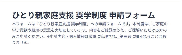 ②ひとり親家庭奨学制度 専用フォームより申請(当ページ下部)